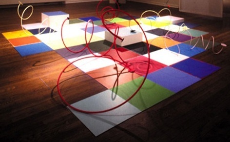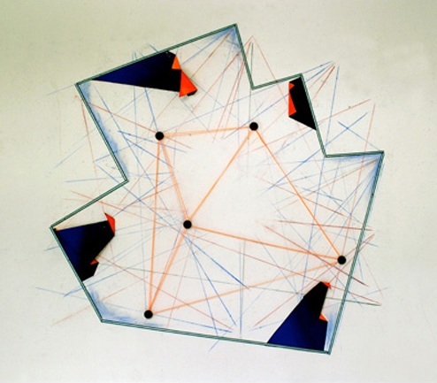 Untitled, aluminum, chalk line, string, acrylics,